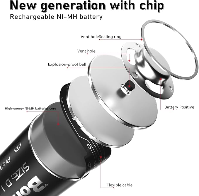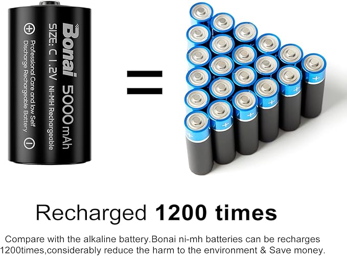 Rechargeable C Cell NiMH Batteries, 5000maAh